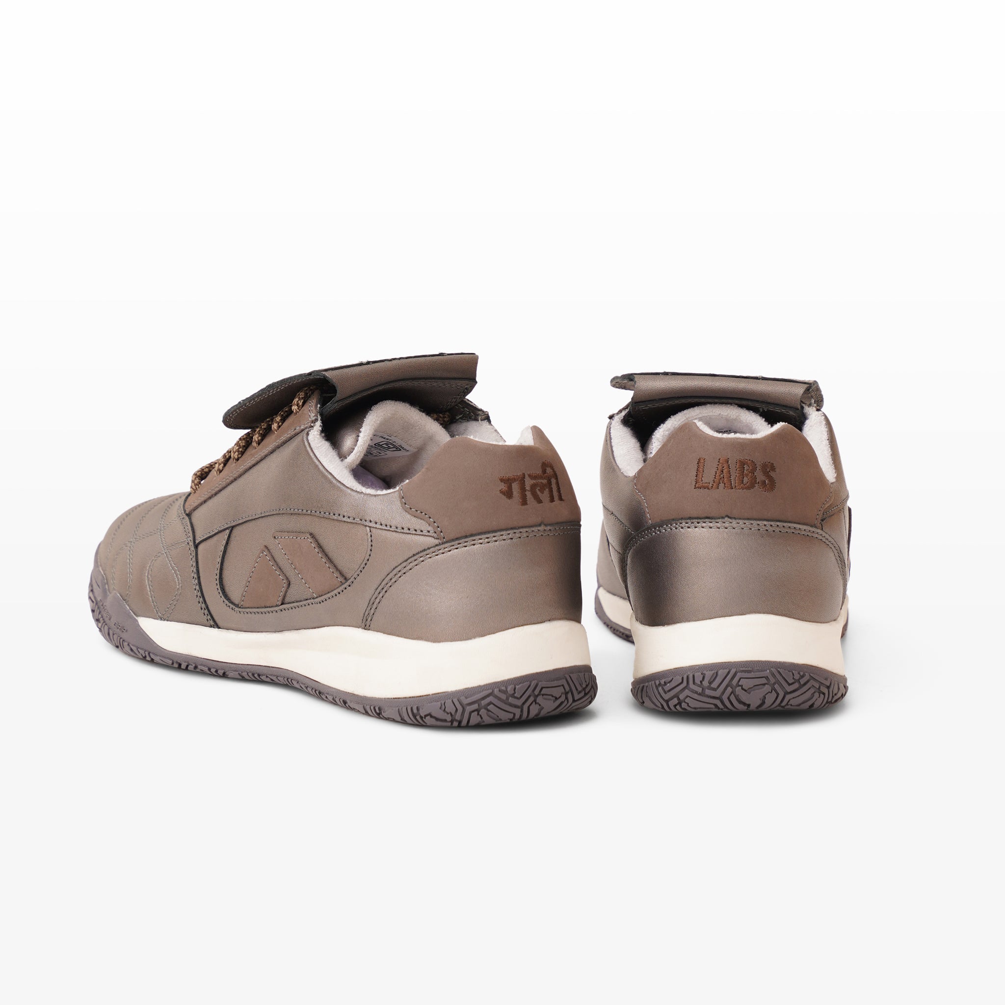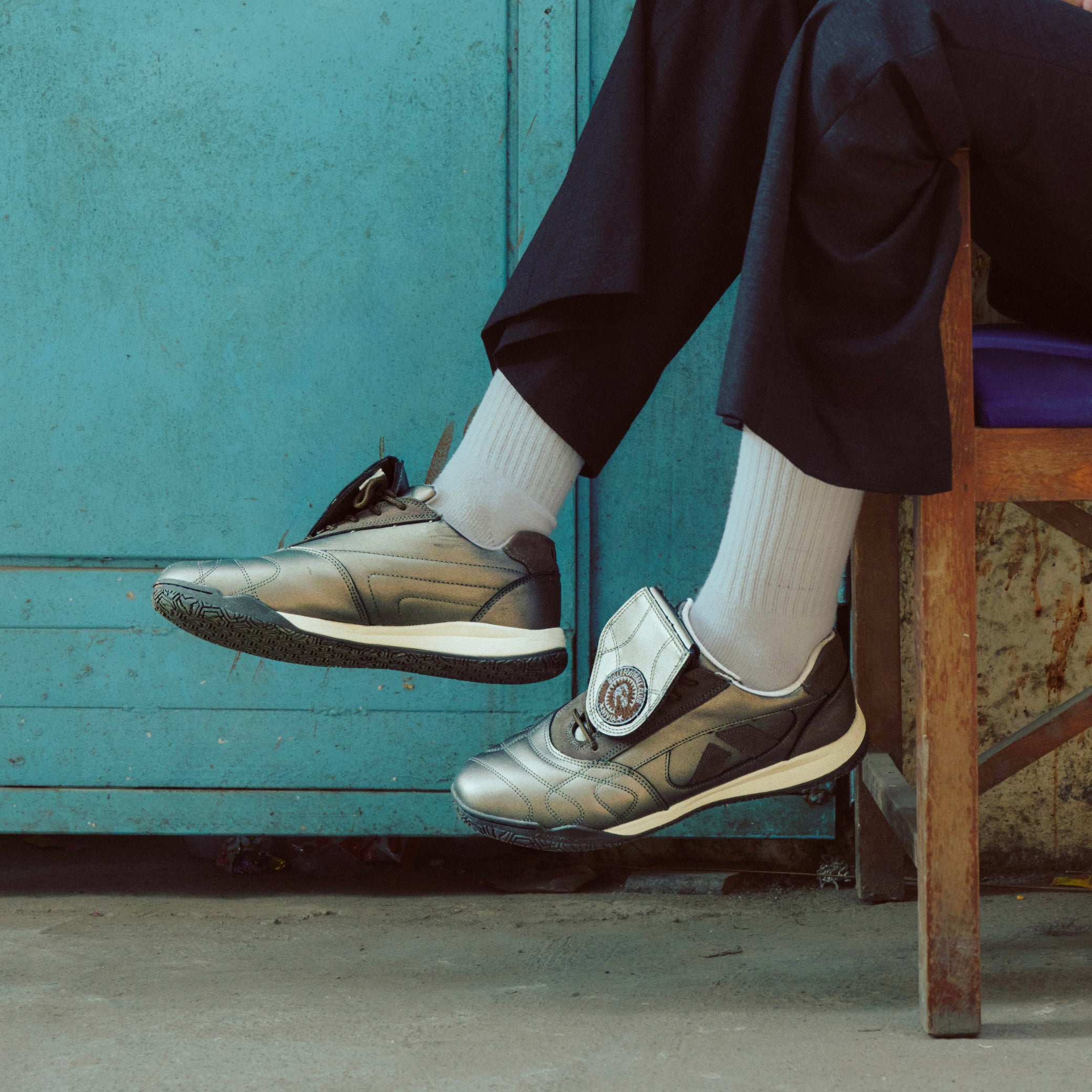 Same maidaan. Different kit. The Eleven Crest brings a premium metallic leather and grey nubuck finish to the Maidaan silhouette, for the player who grew up on open ground and ended up somewhere that requires a sharper shoe.